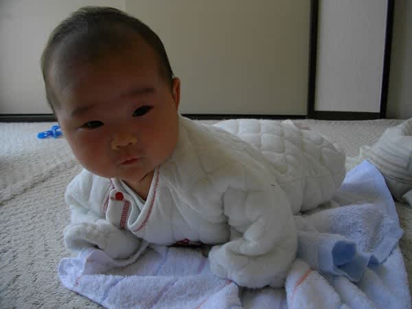 生後45日うつぶせ 首すわりの練習 おもむくままに楽しく学ぶ Hatsuneのブログ