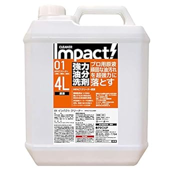 Amazon インパクトクリーナー 原液4l 5倍稀釈可能 業務用 超強力 油汚れ 洗剤 脱脂剤 自動車 バイク エンジン プロも唖然 超強力な強アルカリ性なのに素手で作業可能 自動車 カー 厨房 油汚れ 油膜 ヤニ 換気扇 ガスコンロ 重油 グリース タール 脱脂 業務用